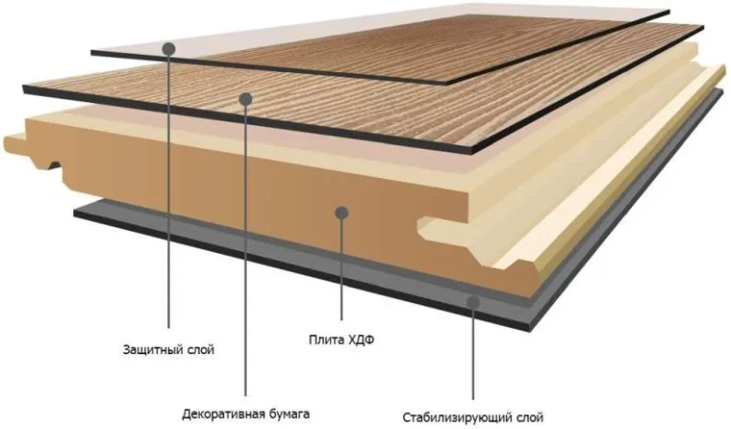 Любое ламинированное покрытие состоит из четырех слоев, выполняющих определенные функции: