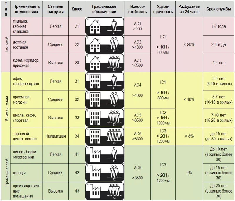 Полная информация о классах ламината 33/АС5Источник evropol-rus.ru