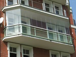 - Застекленные. Обычно это современные балконы с расширенной площадью, закрытые стеклами сверху донизу или только наполовину.