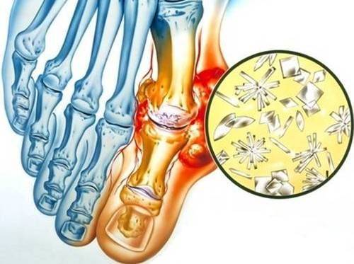 При гиперурекимии кристалы мочевой кислоты откладываются в суставах с развитием подагры