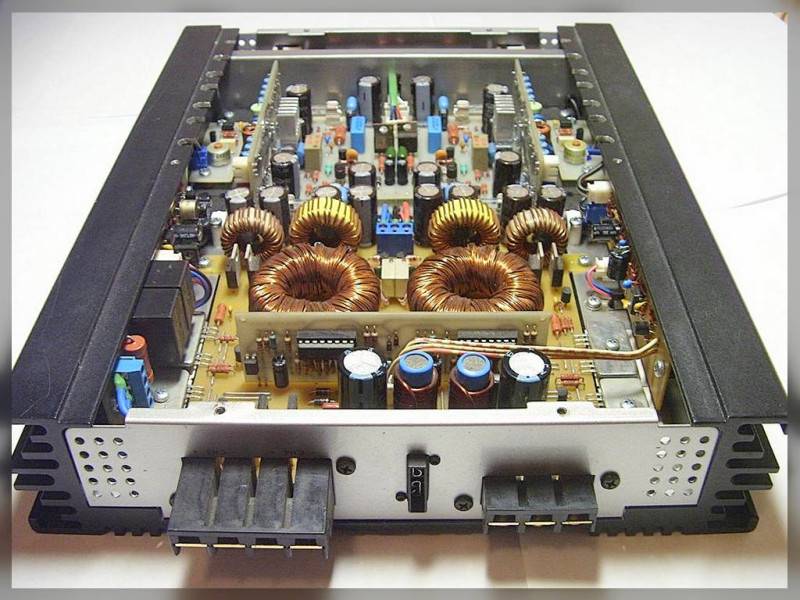 Усилитель моноблок – импульсный усилитель, от таковых усилителей исходит меньше тепла.