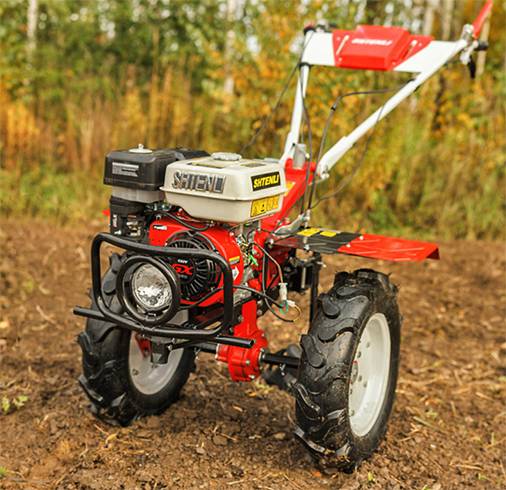 Существуют на рынке и переходные модели, которые по своим основным параметрам походят на мотоблок и имеют большой вес, коробку передач, редуктор, но не имеют вала отбора мощности. По сути, это мотокультиватор на колесном ходу и зачастую, в чем разница между мотокультиватором или мотоблоком понять сложно. Это промежуточные модели, вобравшие все лучшее от обеих машин.