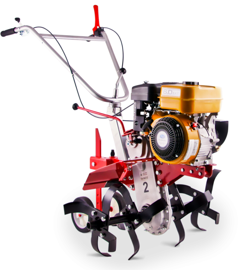 | Маленький вес. При обработке мягкой почвы и большого по размерам участка, это хороший плюс, усталость от работы будет минимальная. | Нет вала отбора мощности. Это главный минус, из-за него к культиватору нельзя подключить оборудование активного типа, только пассивное, например окучник. |