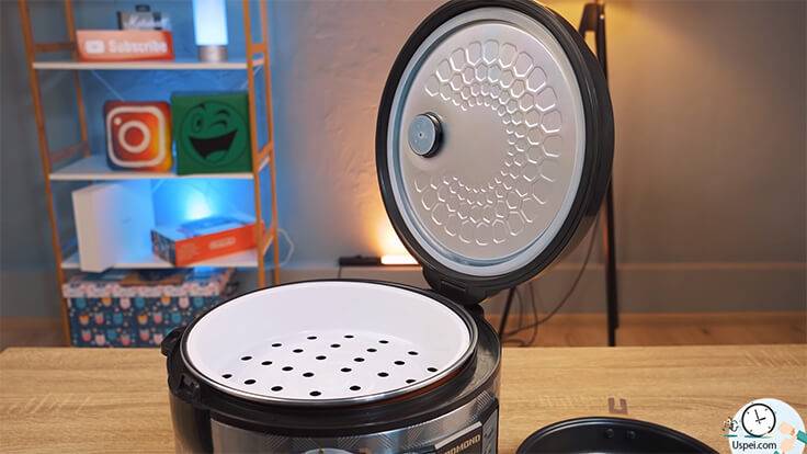 - Продуманная система «сброса» давления, влекущая за собой резкое вскипание имеющейся в чаше жидкости. Данный процесс приводит к резкому и моментальному размягчению некоторых продуктов, невозможному в достижении при любом другом способе приготовления.