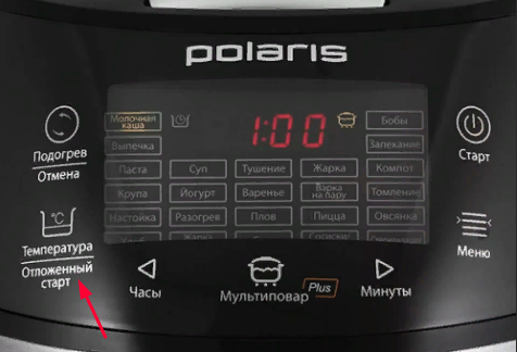 - функция «отсрочка старта». Призвана облегчить ранний подъем. Вечером в чашу загружают продукты и выбирают время, например, утро, когда мультиварка должна начать готовить. Проснувшись, на кухне уже будет ждать готовый завтрак;