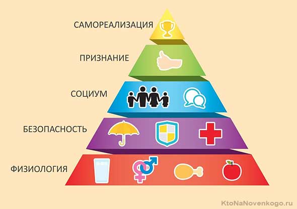 Существует много различных классификаций потребностей, но самая популярная из них принадлежит Абрахаму Маслоу – американскому ученому. Он расположил их от самых низших, биологических нужд до высших, духовных: