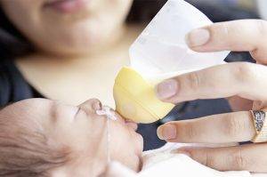 Во время вскармливания держите свое чадо, чтобы он не подавился. Когда он подрастет, можете изменить бутылочку на другую емкость.