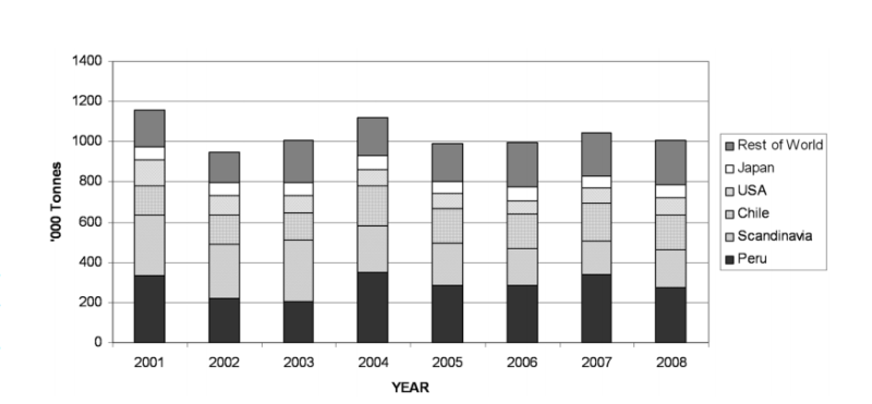 В наше время основные объемы добываются в Норвегии, Перу, Чили, США, Японии, России, также производства есть во многих других странах. На табличке ниже производство в тысячах тонн в год. (Источники БСЭ 1938 год, , )
