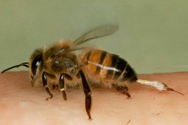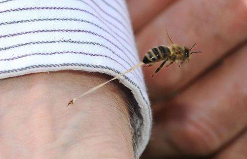 - Не выдавливать жало пчелы. При попытке выдавливания жала, яд может попасть еще глубже в кожу.
