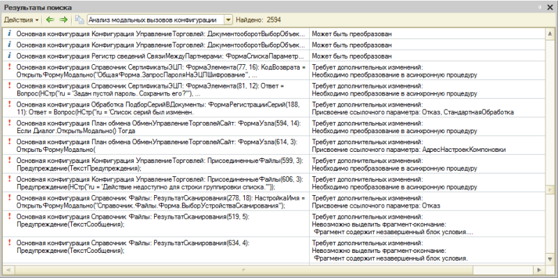 Существует несколько инструментов, которые позволяют найти модальные вызовы конфигурации. Некоторые из этих инструментов позволяют также оценить возможность автоматического преобразования этих вызовов.