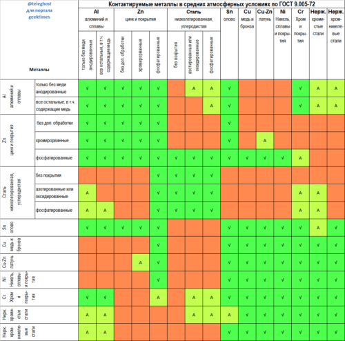 Буква «А» в таблице совместимости означает «ограниченно допустимый в атмосферных условиях».