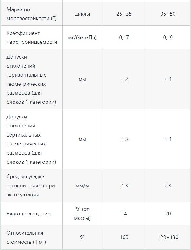 Из таблицы видно, что оба материала довольно похожи (так как оба относятся к ячеистым строительным изделиям) и имеют целый ряд общих достоинств: