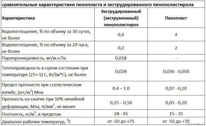 Здесь лидирует пенополистирол. Его теплопроводность составляет 0,028 Вт/м*К, в то время как у пенопласта показатель в полтора раза больше – 0,039.
