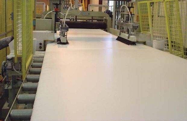 - охлажденный пенополистирольный пласт нарезают на плиты необходимого размера.