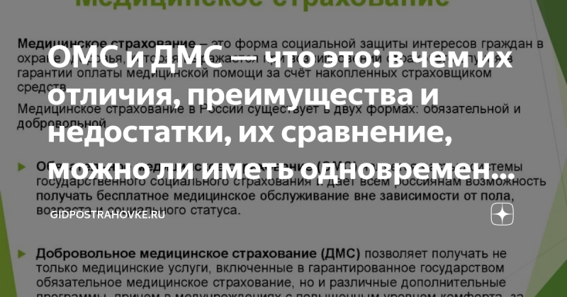 Страхование здоровья включает в себя две основные формы: обязательное медицинское страхование (ОМС) и добровольное медицинское страхование (ДМС). Хотя оба типа страхования направлены на обеспечение медицинской помощи, полисы ОМС и ДМС имеют существенные различия.