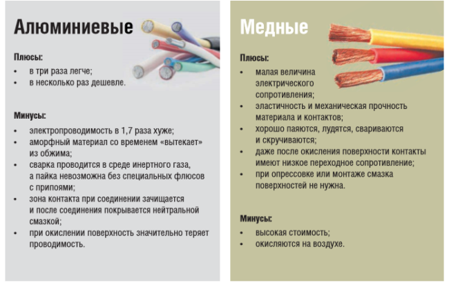 - материал изготовления и количество токопроводящих жил;