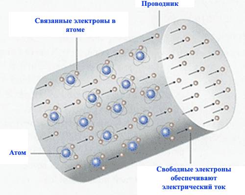 В проводниках в отличие от диэлектриков, высокая концентрация свободных электрических зарядов. В металлах таковыми являются свободные электроны, которые способны передвигаться по всему объёму вещества. Возникновение свободных электронов обусловлено тем, что валентные электроны в атомах металлов весьма плохо взаимодействуют с ядрами и легко теряют связь с ними.