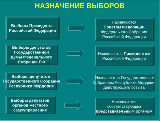 - Период действия. Выборы представляют участнику только определенный интервал времени для выполнения своих обязанностей. Решения референдума предусматривают бессрочное свое действие.