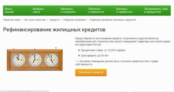 Рефинансирование кредита в Сбербанке