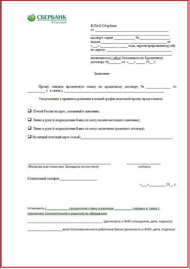 Образец заявления на реструктуризацию кредита в Сбербанке.