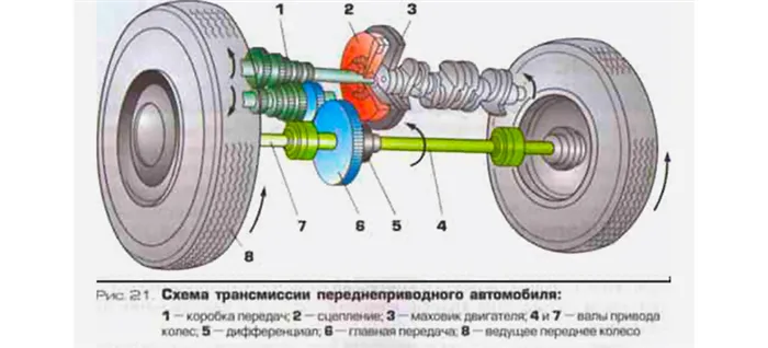 - В ней, в отличие от трансмиссии заднеприводных моделей классической компоновки и полноприводников, отсутствуют карданный вал для направления усилия на вторую пару колес и вынесенный назад картер главной передачи и дифференциала или электронноуправляемых муфт полуосей.