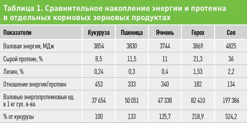 Таблица: Энергетическая ценность, содержание протеина у разных видов зерновых продуктов