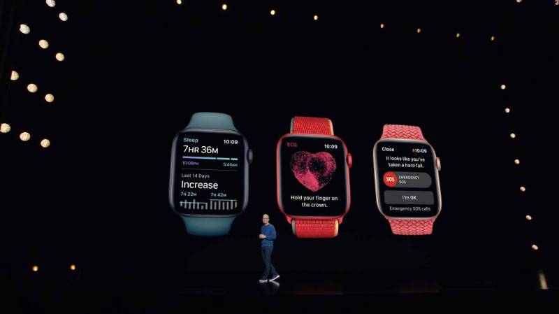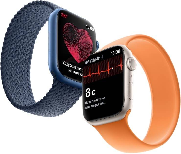 Также модели Apple Watch Series 6 и Apple Watch Series 7 получили на задней своей панели электрический датчик сердечной активности, который может снять электрокардиограмму. Помогут электроды, расположенные в колесике Digital Crown. От пользователя требуется лишь коснуться его и через полминуты на экране часов появится информация о текущей работе сердца. Умные алгоритмы определят, бьется ли оно нормально или в ЭКГ имеются признаки мерцательной аритмии. Конечно, эта информация не может считаться серьезным диагнозом, но может предупредить и заставить обратиться к специалистам для более детального обследования. В приложении «Здоровье» можно будет найти связанные с замером ЭКГ диагнозы.