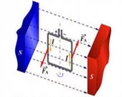 Силы Ампера, действующие на боковые стороны рамки, будут создавать вращающий момент, величина которого пропорциональна магнитной индукции, силе тока в рамке, ее площади S и зависит от угла a между вектором магнитной индукции и нормалью к рамке.