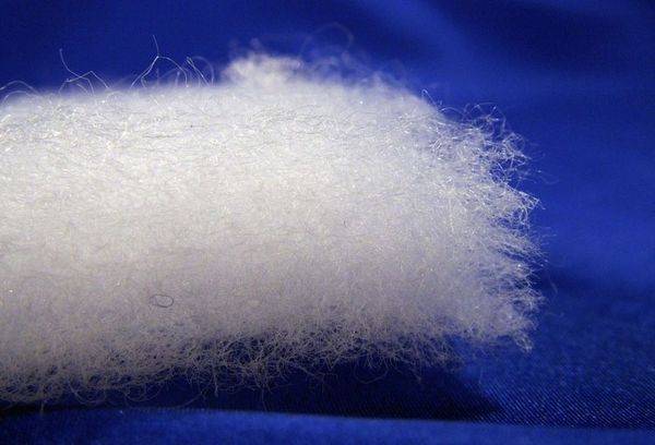 Заменитель лебяжьего пуха представляет собой высокоизвитое полиэфирное силиконизированное волокно. В процессе производства тончайшее волокно (его называют микроволокном) приобретает высокоизвитую структуру – каждое волокно скручено по спирали. Затем эти спиральки обрабатываются силиконом для повышения потребительских свойств и увеличения износостойкости. Таким образом, искусственный лебяжий пух выглядит в виде полиэстеровых пушистых шариков.