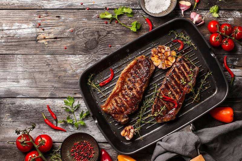 Кроме стейков, в ней можно готовить сосиски, антрекоты, вырезку и даже котлеты. Птицу с рыбой запекать можно как целиком, так и кусками. Для приготовления овощей-гриль больше всего подходят перец болгарский, томаты, баклажаны и кабачки.
