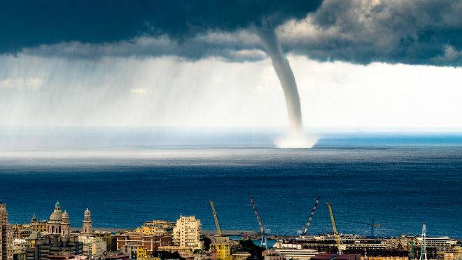 Торнадо – это атмосферные вихри, развивающиеся в грозовых и кучевых тучах. Потоки ветра быстро опускаются на землю большим столбом. Ширина столба у основания может быть диаметром до 400 метров. Иногда наземные торнадо могут быть шириной от трех километров, на воде же, как правило, не более 40 метров.