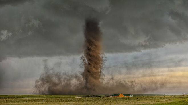 Торнадо же всегда связано с грозовыми облаками, причём с очень мощными и крупными, которые называются суперячейками. В таких облаках неминуемо возникает вращение воздуха – из-за сильнейших восходящих движений, охватывающих переднюю часть облака.