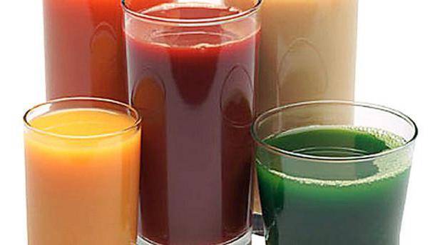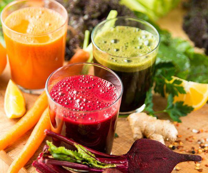 яблочный, капустный, сельдерейный, моровно-яблочно-свекольный, сок из проросших зерен пшеницы и других злаков. Рекомендуется добавка лимона в сладкие соки.