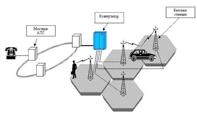 Все БС размещаются оператором таким образом, чтобы охватить территорию по принципу сот (шестиугольников). Это позволяет создать максимально цельную зону покрытия. Принцип, по которому работает эта связь, схематически изображён на рисунке ниже: