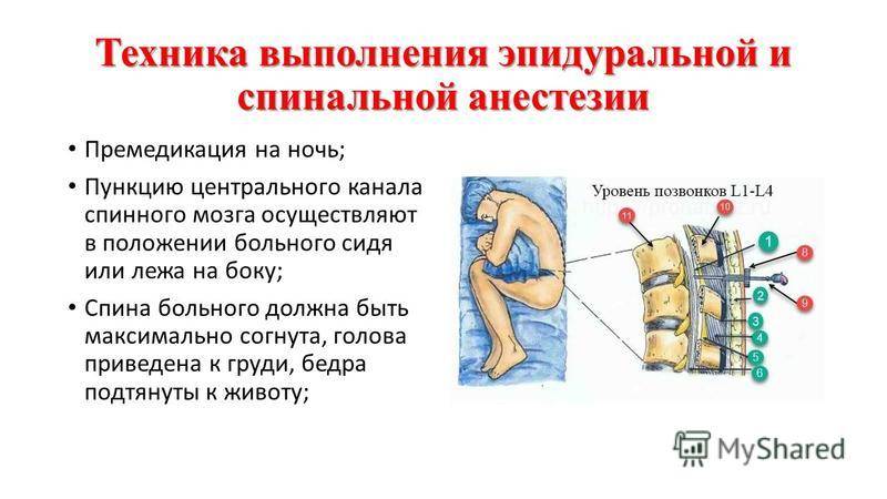 Она расположена близко к поверхности, поэтому выполняется относительно неглубокая инъекция. Пациентка в момент введения анестезии, должна лежать на боку, подведя колени к животу или сидеть, округлив спину.