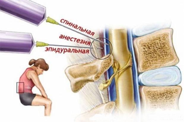 Во время процедуры в поясничный отдел позвоночника, предварительно обработав кожу в месте инъекции антисептиком, вводят препарат с анестезирующим действием. Игла проникает в эпидуральную область, находящуюся перед субарахноидальным слоем, состоящую из жировой ткани и нервных окончаний.
