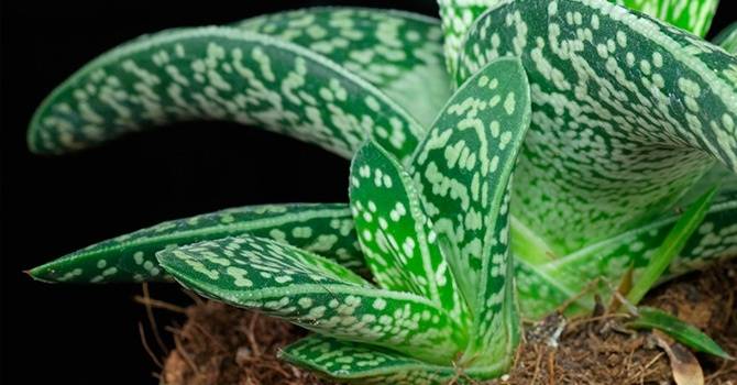 алоэ Джексона – невысокое растение, до 30 см, с узкими пятнистыми листьями, родом из Эфиопии и Сомали, неприхотливое, довольствуется рассеянным светом и редким поливом, не боится сквозняков и неопытных цветоводов;