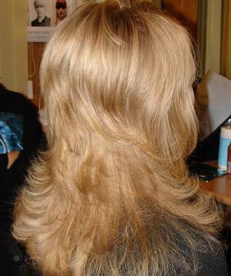 Сам процесс стрижки таков: волосы разделить на пряди и подрезать их так, чтобы каждая следующая прядь была немного длиннее предыдущей. Соседние пряди сливаются друг с другом, образуют однородную, гладкую поверхность, единое целое. Длина волос изменяется только по контуру. Прическа обрамляет почти со всех сторон овал лица. Видимых границ не должно быть. Локоны плавно продолжают друг друга.