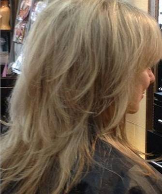 Но особенно роскошно прическа выглядит на длинных волосах, в этом случае стрижка лесенка сзади оформляется разноуровневыми прядями, которые великолепно смотрятся, если простричь «перышками».