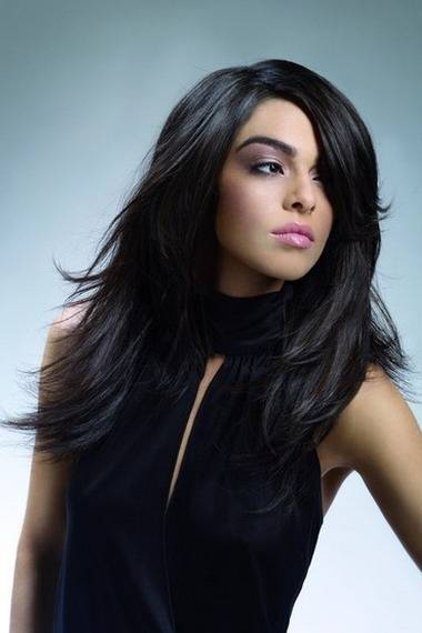 Наиболее модны, а что главное, универсальны два варианта челок. Первый, длинные – до бровей – густые и прямые, они отлично контрастируют с многослойным контуром прически и в тоже время отлично корректируют овал лица. Такая челка будет великолепно смотреться на обладательницах узких и вытянутых к подбородку лиц. Она отлично уравновешивает их пропорции и делает черты лица изящнее.