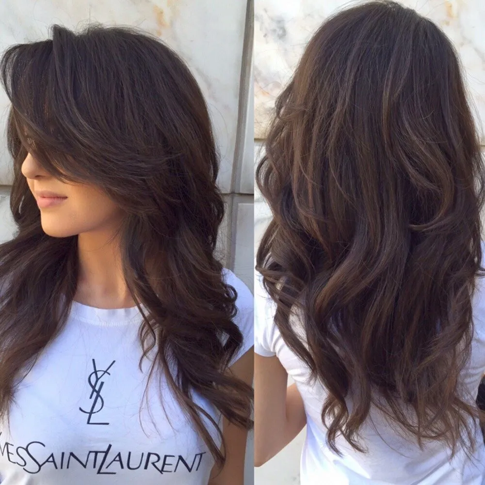 Независимо от длины, ступенчатая стрижка лесенка отлично комбинируется со всеми фасонами модных . Даже если вы никогда не носили челку, в сочетании с такой прической её стоит попробовать сделать.