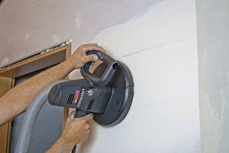 Работа шпатлевкой также имеет некоторые нюансы. Выравнивают и подготавливают поверхность наждачной бумагой. Если объем работ большой (например, нужно нанести шпаклевку как финальный слой на ранее оштукатуренную стену), предпочтительнее делать это механическим шкуротером. Это значительно сократит время на подготовку.