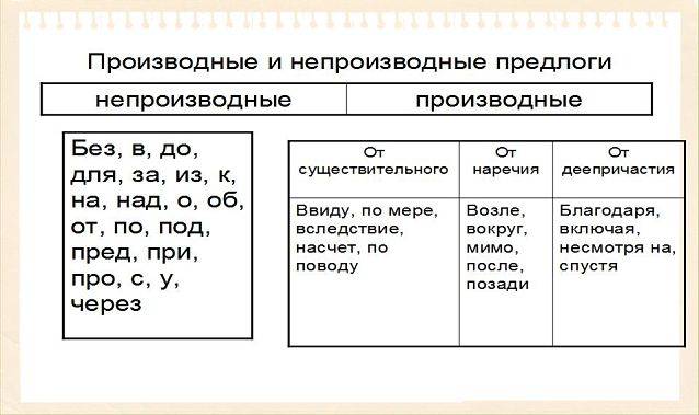 - непроизводные предлоги