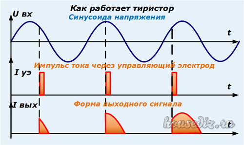 В те полупериоды, когда на минус аккумулятора подается минус