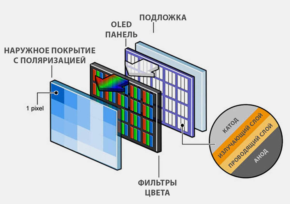 OLED-экранам такая подсветка не требуется: как только на устройство подается ток, нужные диоды начинают светиться без дополнительного стимулирования. «Нужные» — определяющее слово при описании OLED-технологии.