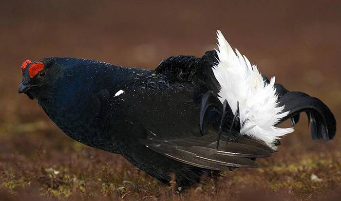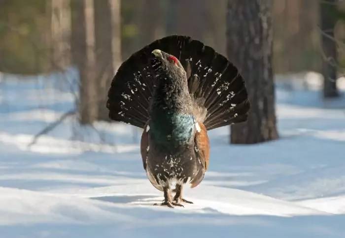 - Окраска: глухарь имеет яркую окраску оперения с черными и белыми перьями, а также насыщенными красными и зелеными оттенками. В то время как тетерев украшен тусклыми коричневыми и серыми перьями, что позволяет ему легко смешиваться с окружающей средой.