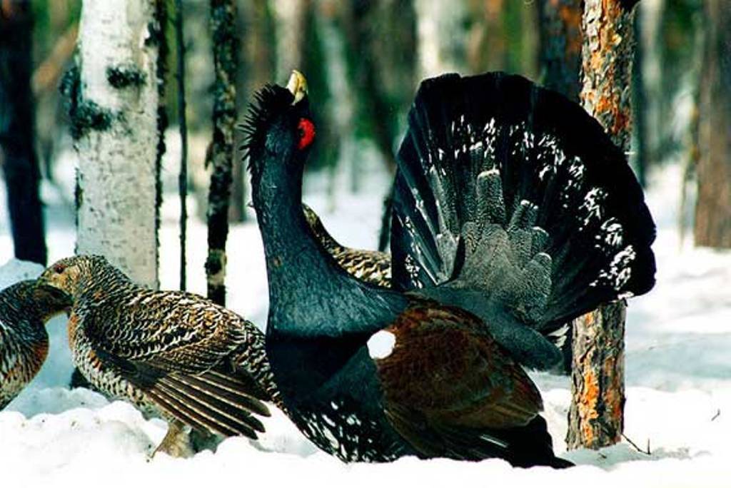 Зимой, когда стоят сильные морозы, глухари могут не покидать своих “нор” сутками. Если и выходят, то только для того, чтобы покушать.