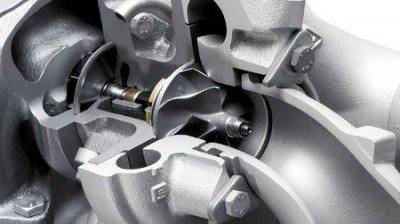 К минусам можно отнести ограниченную мощность и более низкий процент КПД при одновременном увеличении расхода топлива, так как мотор будет тратить дополнительную энергию на привод компрессора. rnrnБолее сложный турбонагнетатель состоит из двух крыльчаток. Первая крыльчатка крутится за счет выхлопных газов и через вал обеспечивает движение второй, которая и всасывает воздух. Основное преимущество данного устройства в том, что оно обладает большим процентом КПД и позволяет значительно увеличить мощность силового агрегата, при этом его расход топлива останется неизменным.