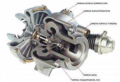 При выявлении и устранении всех этих и возможных других причин ремонт и диагностика турбокомпрессора заключается в следующем: