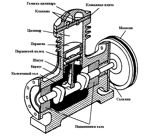 В турбокомпрессорах газ сжимается вследствие неподвижной и вращающейся решетками областей. Объемные компрессоры так называются потому, что во время работы в них меняется объем камеры, в которой сжимается газ. Это самый распространенный тип компрессоров. Основными среди них являются те, в которых происходит процесс сжатия за счет работы поршня в цилиндре, а также машины, в которых сжимающий элемент вращается. Их еще называют роторными.